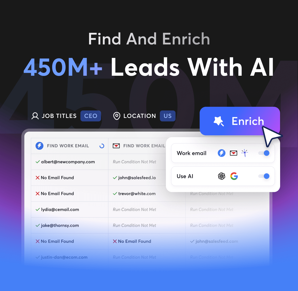 450M+ Contacts: Double the data coverage compared to Lead Finder.